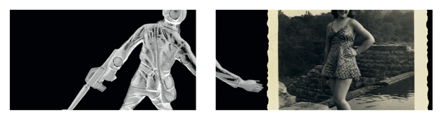 Somewhere Between Life and Death juxtaposes images of toy soldiers with World War II era found imagery of women. It visually explores the choices war poses to an individual, as well as illuminates the everyday relationships that global conflict disrupts and often destroys.
