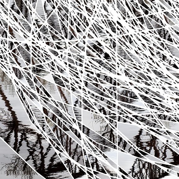 Reflections on Minnesota is a photographic set of sixteen images examining the surveillance of Minneapolis in the aftermath of the murder of George Floyd. Each image in this series contains two distinct types of imagery. The first is helicopter patterns from May 29th to May 31st, 2020, over Minneapolis. These are the white lines encompassing the entire image. The second type of images are Minnesota bodies of water. The images of water point to an idyllic vision of Minnesota that embraces and celebrates the bounty of lakes and rivers. The name Minnesota is from the Dakota meaning "land where the water reflects the clouds or the sky" and/or "clear blue water". The helicopter patterns reveal the incessant presence of helicopters in May 2020 over Minneapolis. The visual, auditory and sheer repetitive nature of them became a symbol of many things including the protection of property, the monitoring of protestors as well as the feeding of news cycles. In the images, helicopter patterns disrupt, disjoint and cut through the picturesque and calm that bodies of water provide.