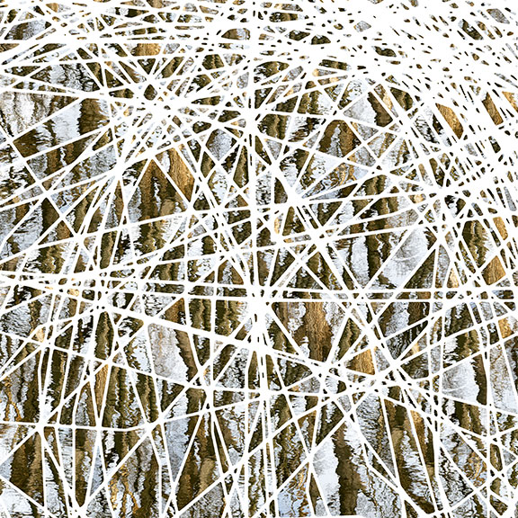 Reflections on Minnesota is a photographic set of sixteen images examining the surveillance of Minneapolis in the aftermath of the murder of George Floyd. Each image in this series contains two distinct types of imagery. The first is helicopter patterns from May 29th to May 31st, 2020, over Minneapolis. These are the white lines encompassing the entire image. The second type of images are Minnesota bodies of water. The images of water point to an idyllic vision of Minnesota that embraces and celebrates the bounty of lakes and rivers. The name Minnesota is from the Dakota meaning "land where the water reflects the clouds or the sky" and/or "clear blue water". The helicopter patterns reveal the incessant presence of helicopters in May 2020 over Minneapolis. The visual, auditory and sheer repetitive nature of them became a symbol of many things including the protection of property, the monitoring of protestors as well as the feeding of news cycles. In the images, helicopter patterns disrupt, disjoint and cut through the picturesque and calm that bodies of water provide.